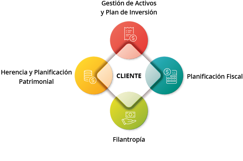Nuestro modelo centrado en el cliente incluye todos los aspectos de su bienestar financiero, así como la gestión de patrimonio y planificación de inversión, planificación fiscal, herencia y planificación patrimonial, entre otros. Nos enfocamos en su tranquilidad financiera de manera que usted no lo tenga que hacer.